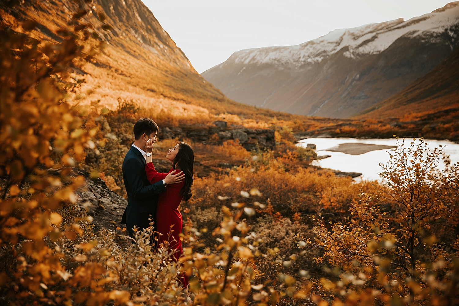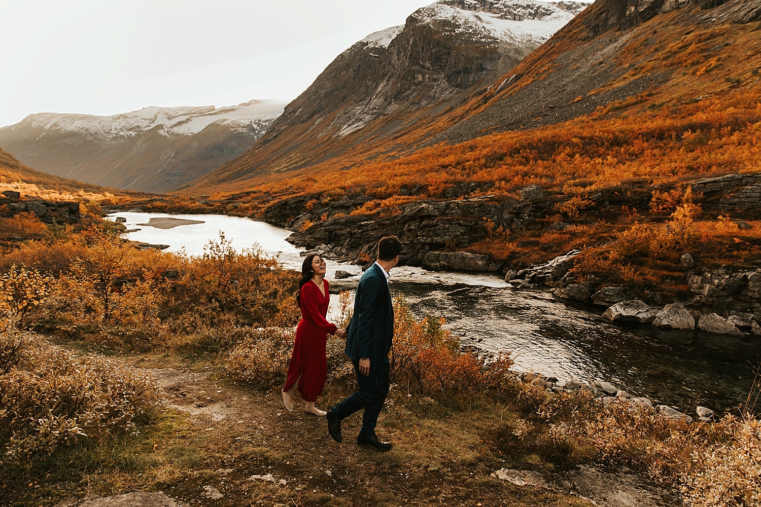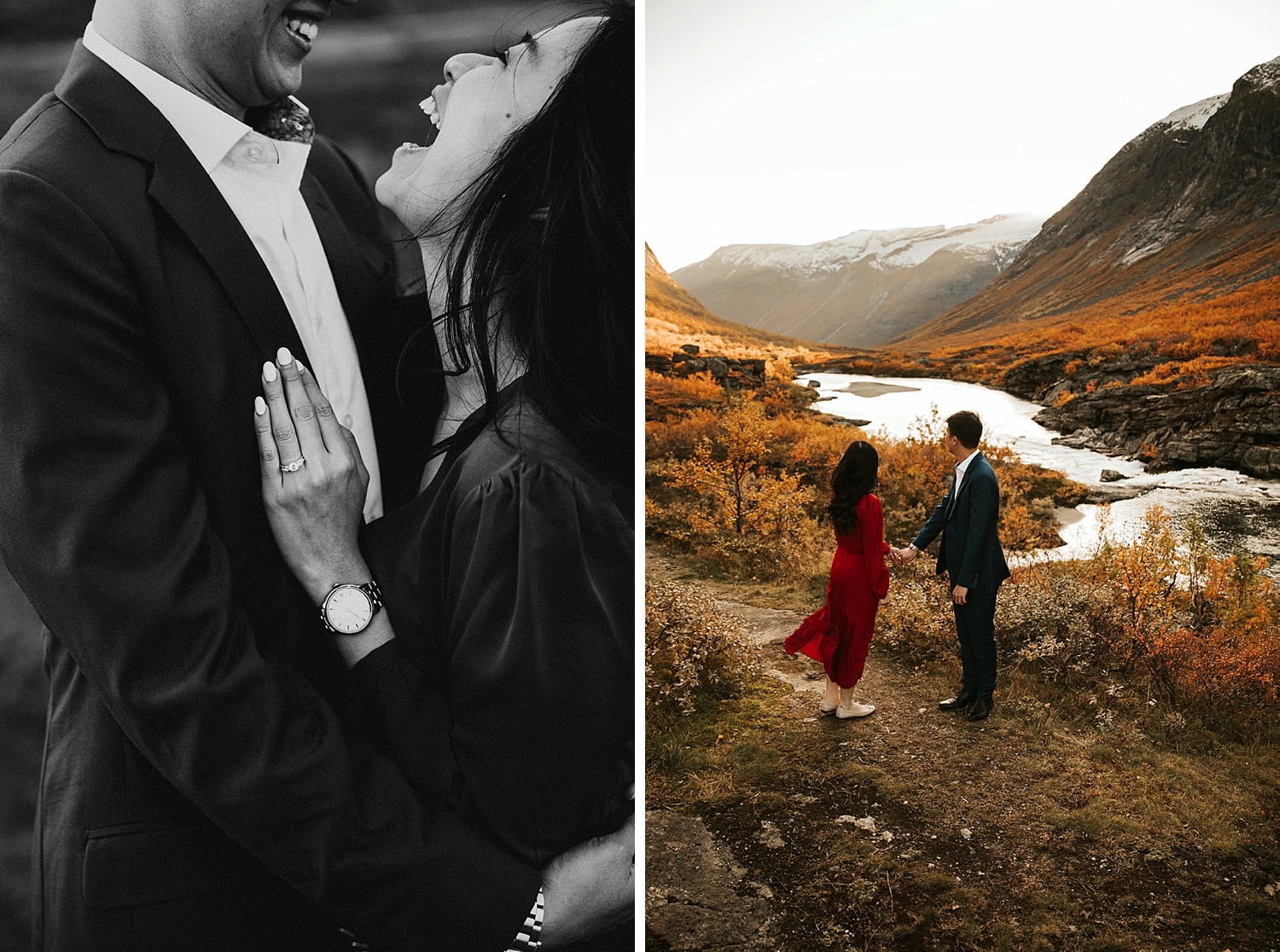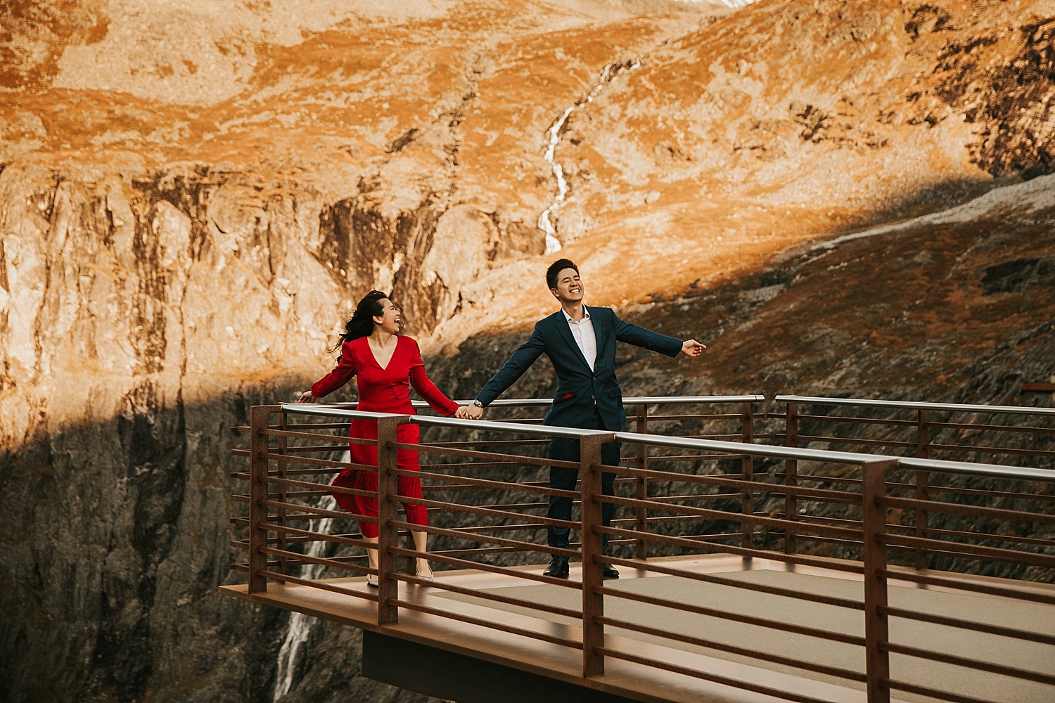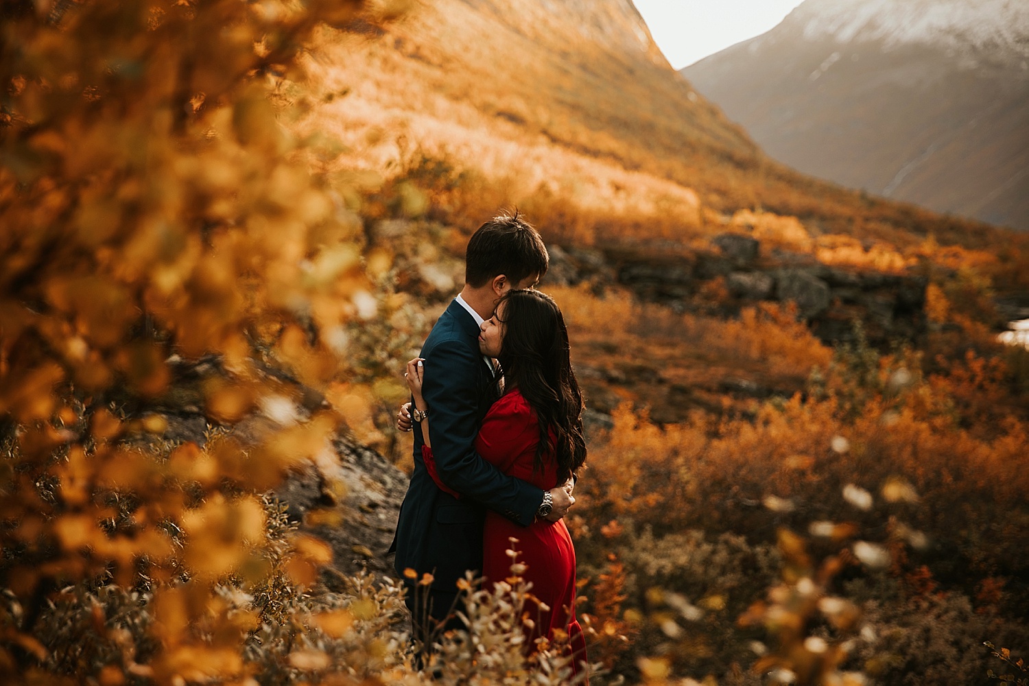 I was super excited when Evetor and Gawaine contacted me about doing a shoot during their trip to Norway! They came all the way from Singapore to the cold Norwegian mountains, dressed in beautiful fall colours. And you can only imagine that I got even more excited when Gawaine suddenly contacted me without Evetor knowing, and told me that he was planning to propose during the shoot, while I was there to capture the moment. So it’s safe to say that this was a shoot a bit out of the ordinary, and it was so special to be a part of! So scroll your way down to see Evetors reaction to the proposal, and enjoy these photos of two happy souls in the gorgeous mountainscapes of Romsdal and Valldal :)
