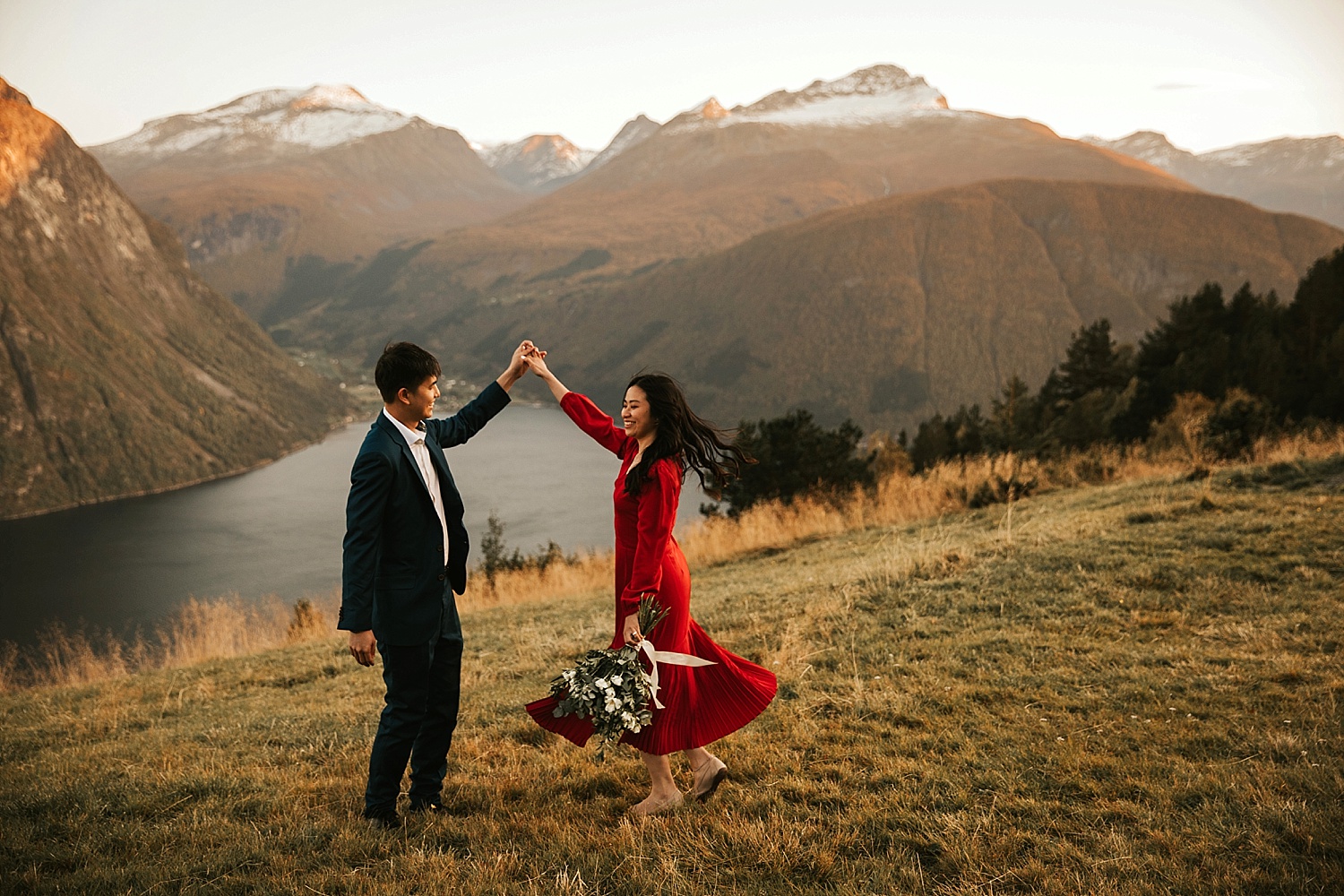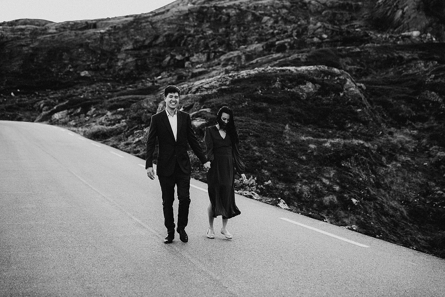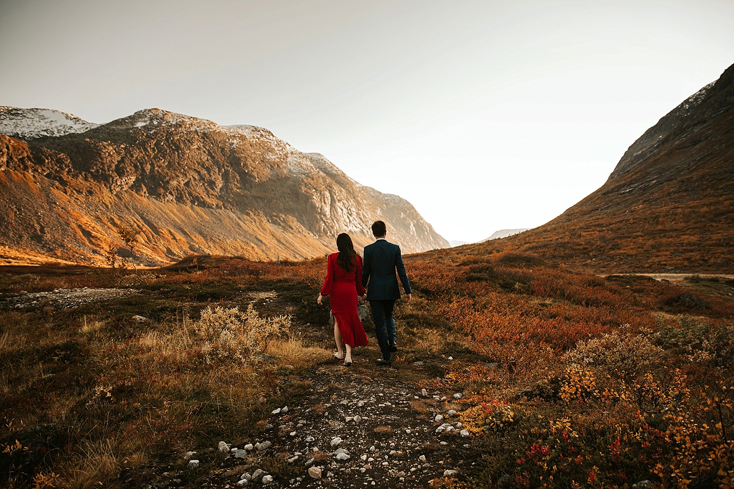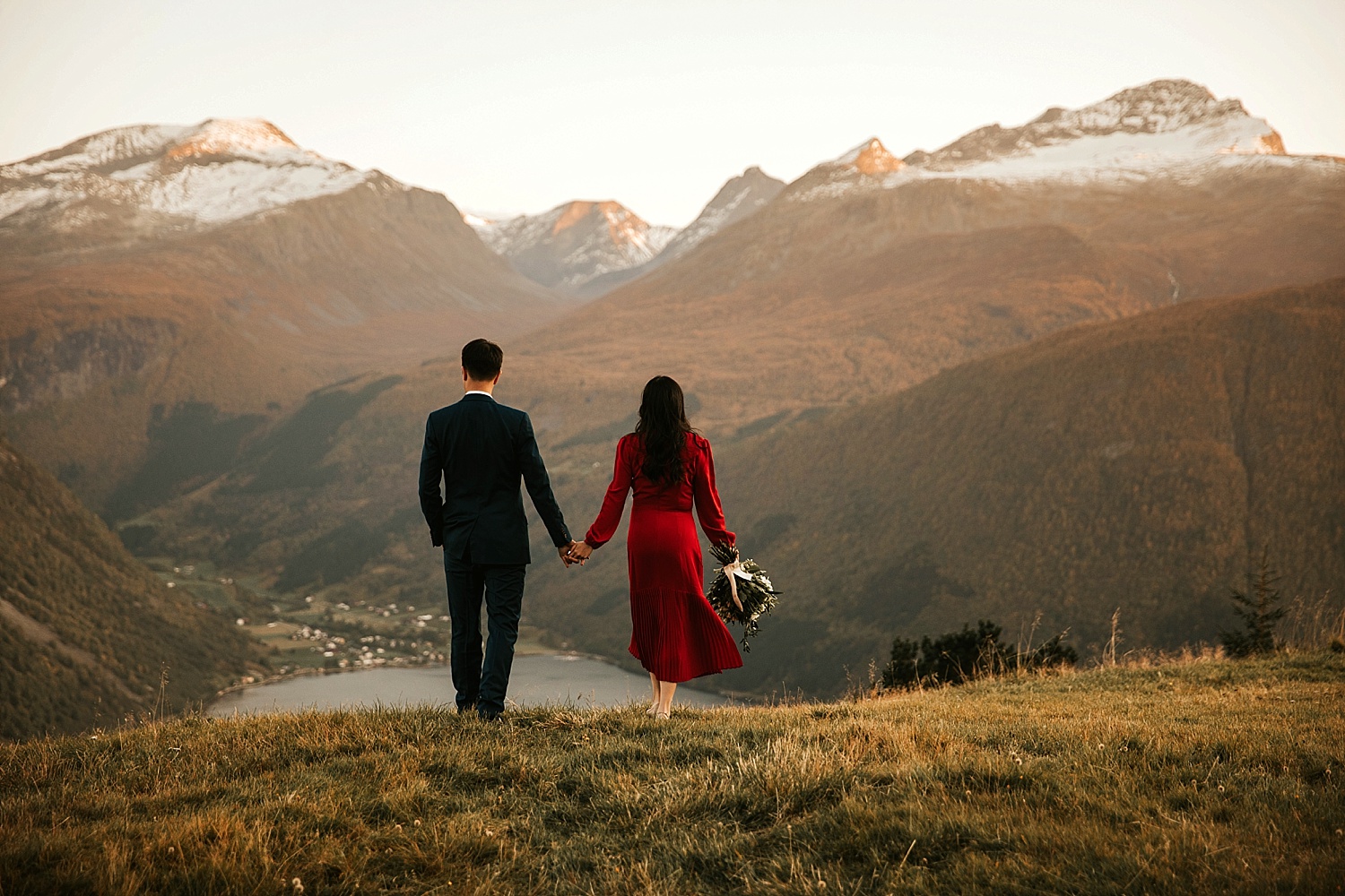 I was super excited when Evetor and Gawaine contacted me about doing a shoot during their trip to Norway! They came all the way from Singapore to the cold Norwegian mountains, dressed in beautiful fall colours. And you can only imagine that I got even more excited when Gawaine suddenly contacted me without Evetor knowing, and told me that he was planning to propose during the shoot, while I was there to capture the moment. So it’s safe to say that this was a shoot a bit out of the ordinary, and it was so special to be a part of! So scroll your way down to see Evetors reaction to the proposal, and enjoy these photos of two happy souls in the gorgeous mountainscapes of Romsdal and Valldal :)