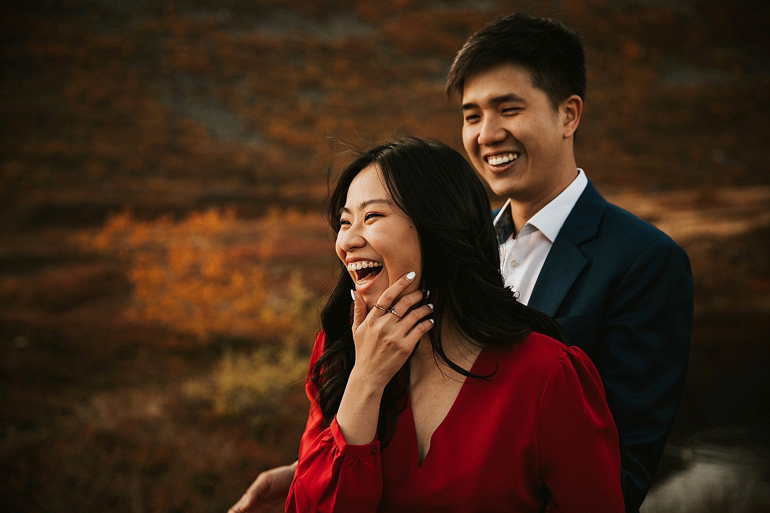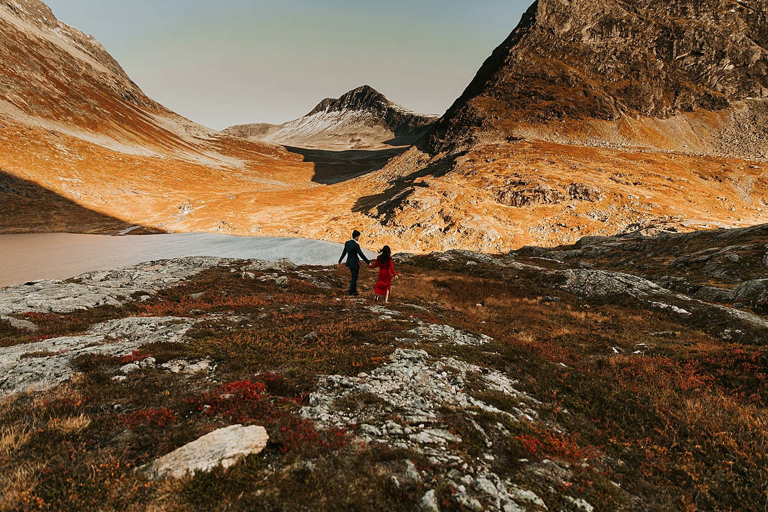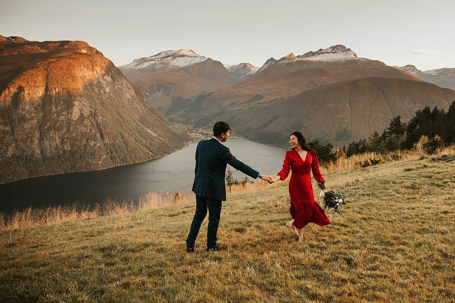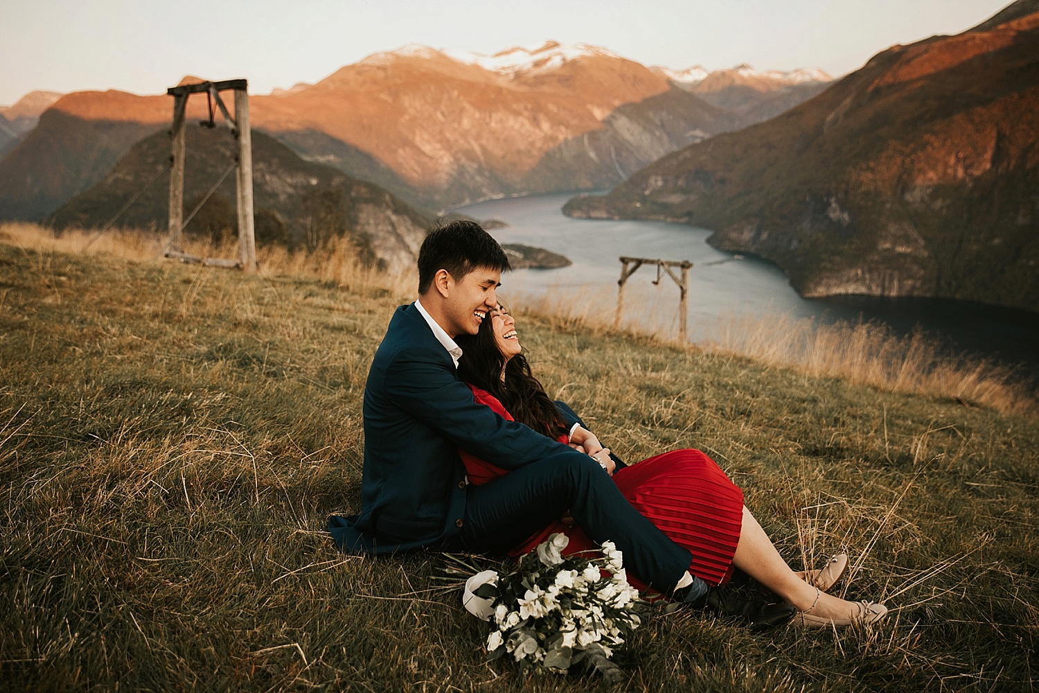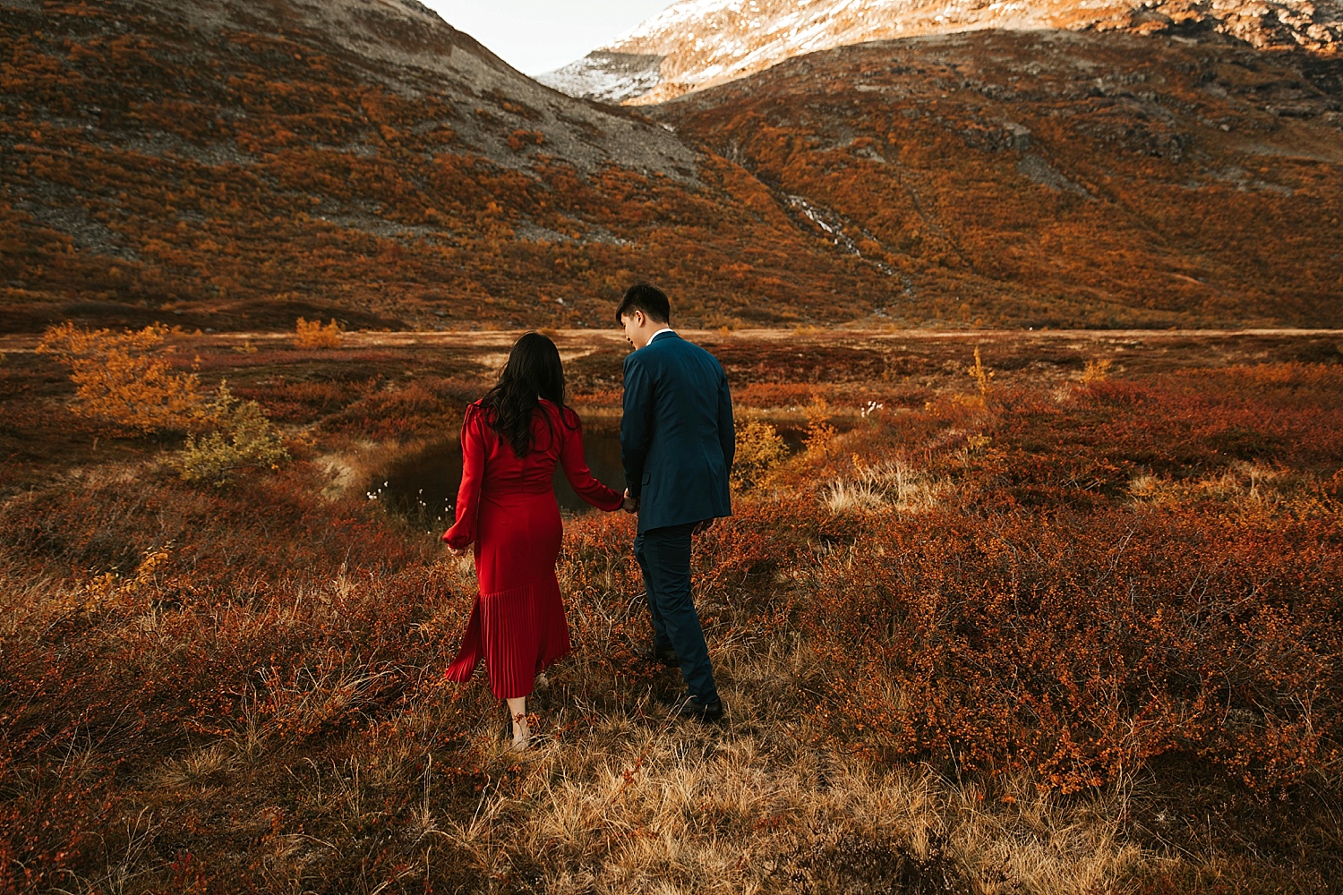 I was super excited when Evetor and Gawaine contacted me about doing a shoot during their trip to Norway! They came all the way from Singapore to the cold Norwegian mountains, dressed in beautiful fall colours. And you can only imagine that I got even more excited when Gawaine suddenly contacted me without Evetor knowing, and told me that he was planning to propose during the shoot, while I was there to capture the moment. So it’s safe to say that this was a shoot a bit out of the ordinary, and it was so special to be a part of! So scroll your way down to see Evetors reaction to the proposal, and enjoy these photos of two happy souls in the gorgeous mountainscapes of Romsdal and Valldal :)