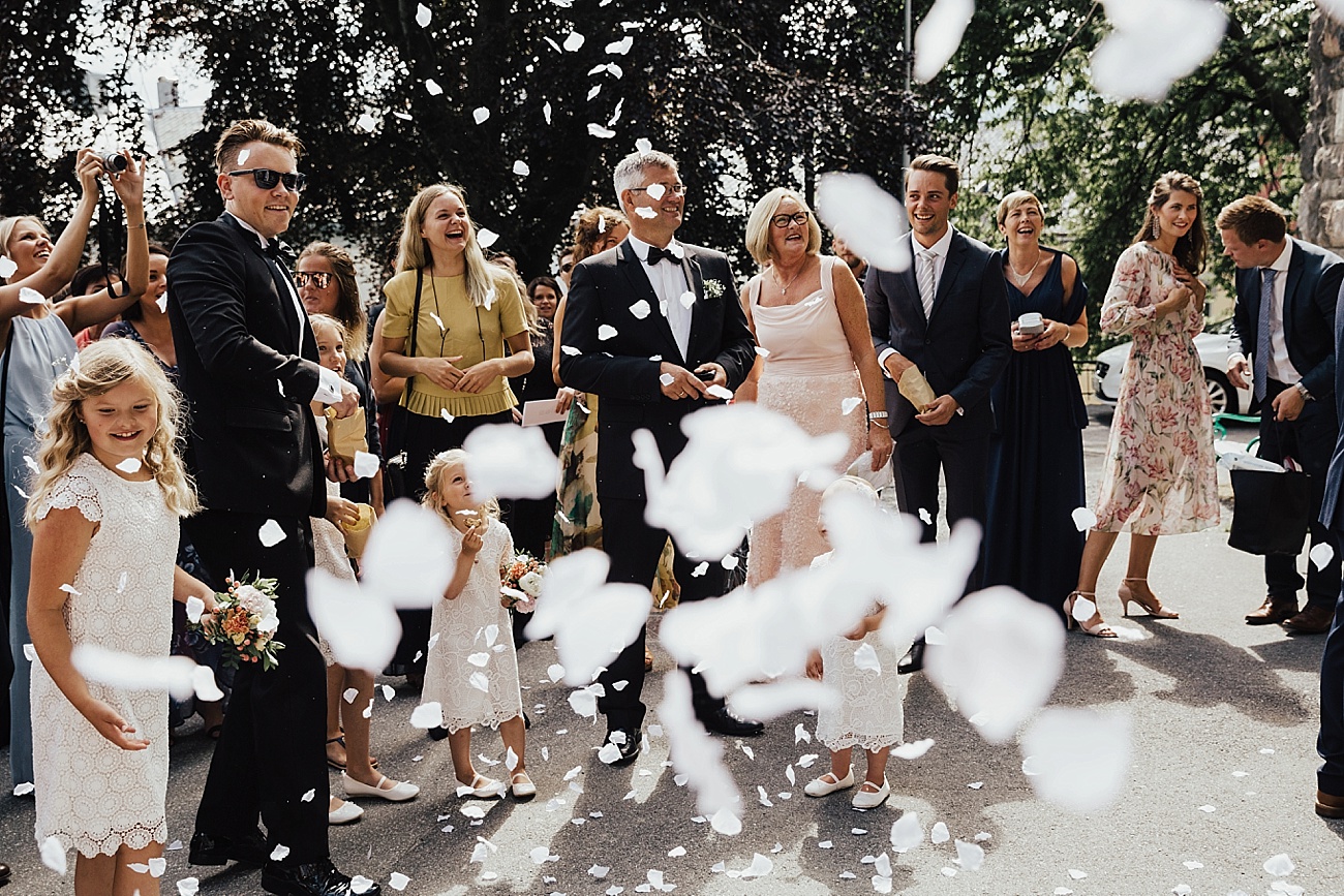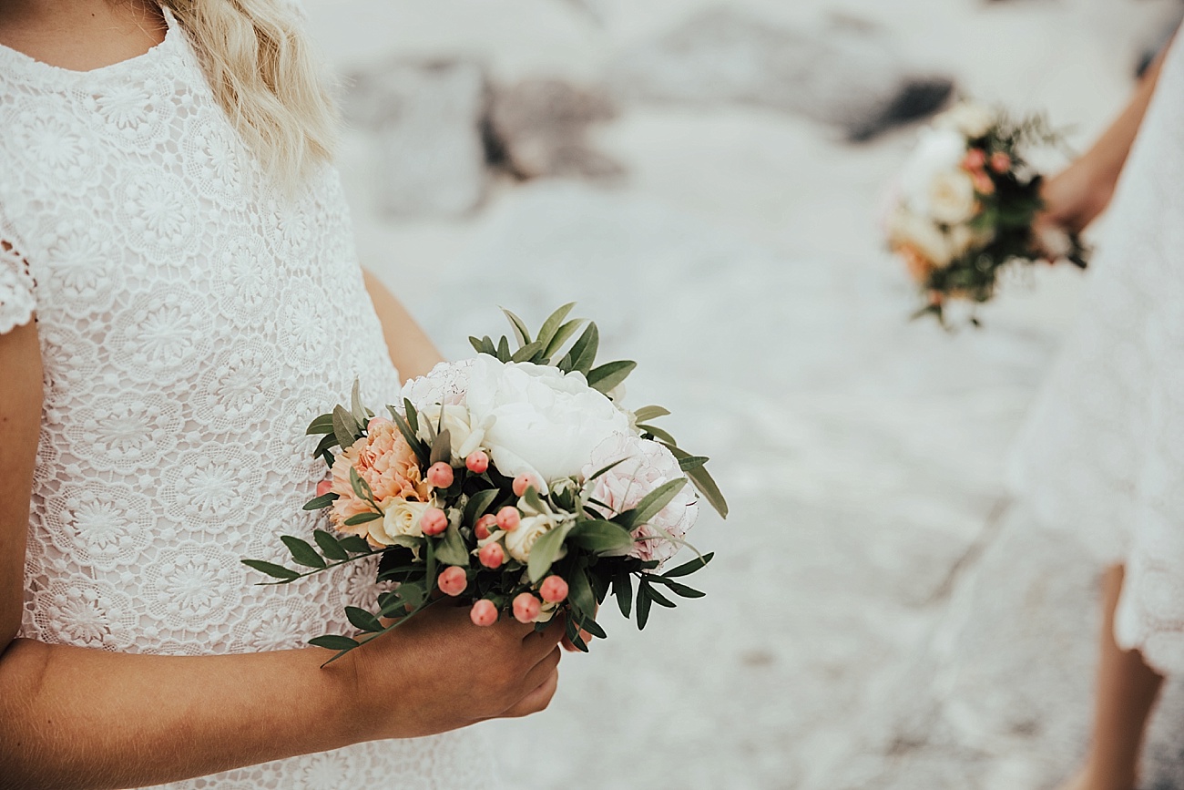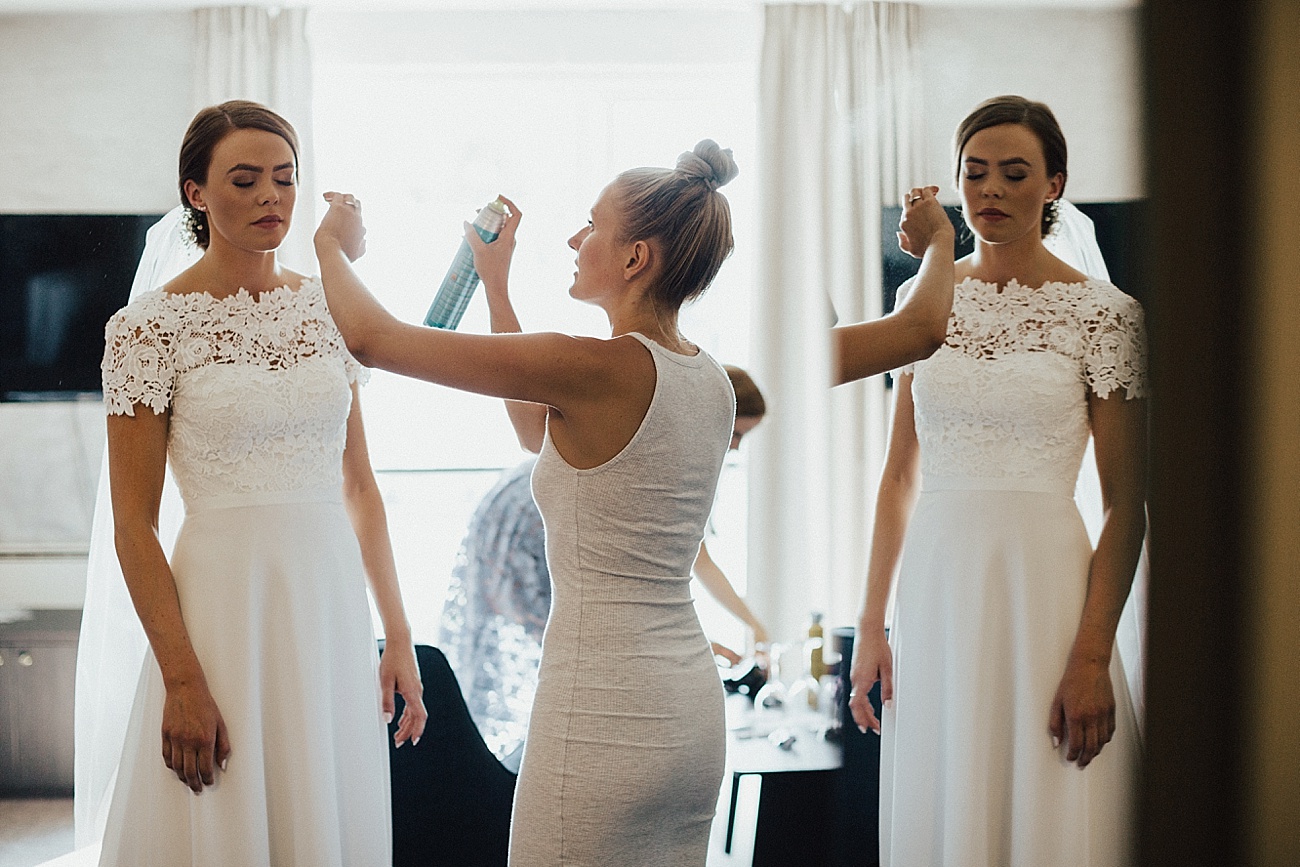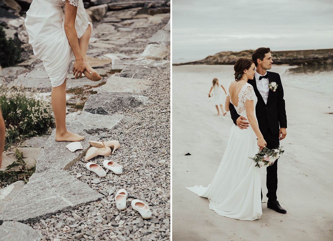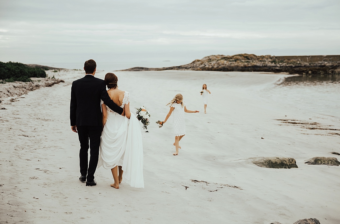 23. juli 2016 møtte jeg opp på Hotel Bryggen i Ålesund, der Hanne gjorde seg klar til sin store dag sammen med sine to forlovere. Birgit fra B.hair hadde tatt turen fra Molde for anledningen, og sto for hår og sminke. Veien var ikke lang fra hotellet til Ålesund kirke, og etter en flott vielse skinte sola på de nygifte på kirketrappa :) Fotograferingen etterpå gjorde vi først i Skodje, og deretter gikk turen ut til Giske, hvor festen også fant sted. Etter fotograferingen ventet familie og gjester i Øygardshallen, klare for å feire det lykkelige paret med taler, god mat og ikke minst det sunnmørske kakebord! Vi fikk også sneket oss ut en liten stund under middagen, for å ta noen flere bilder på stranden i den nydelige sommerkvelden. Kjære Hanne og Lars, tusen takk for en kjempeflott dag sammen med dere to, det var en glede fra start til slutt sammen med så bra folk som er like fine på innsiden som på utsiden <3