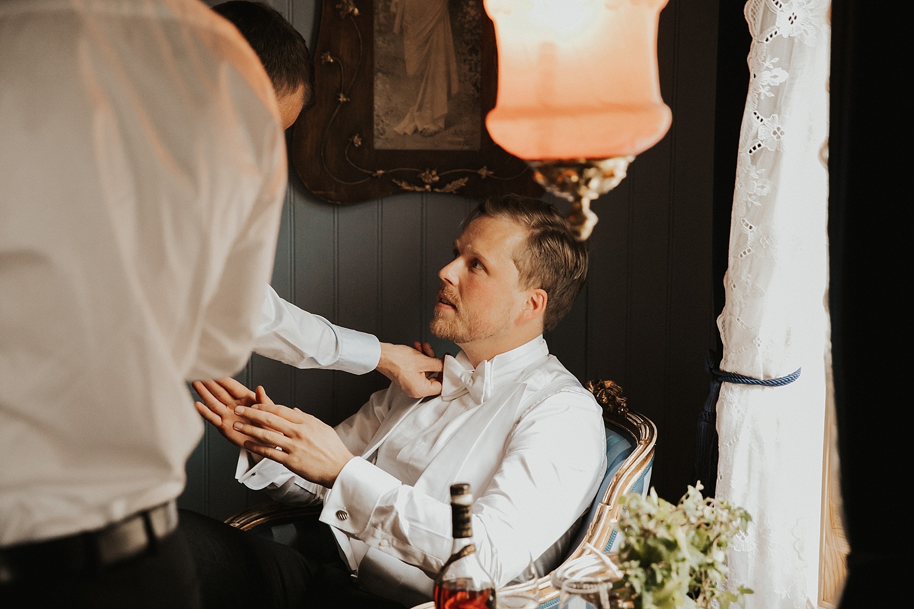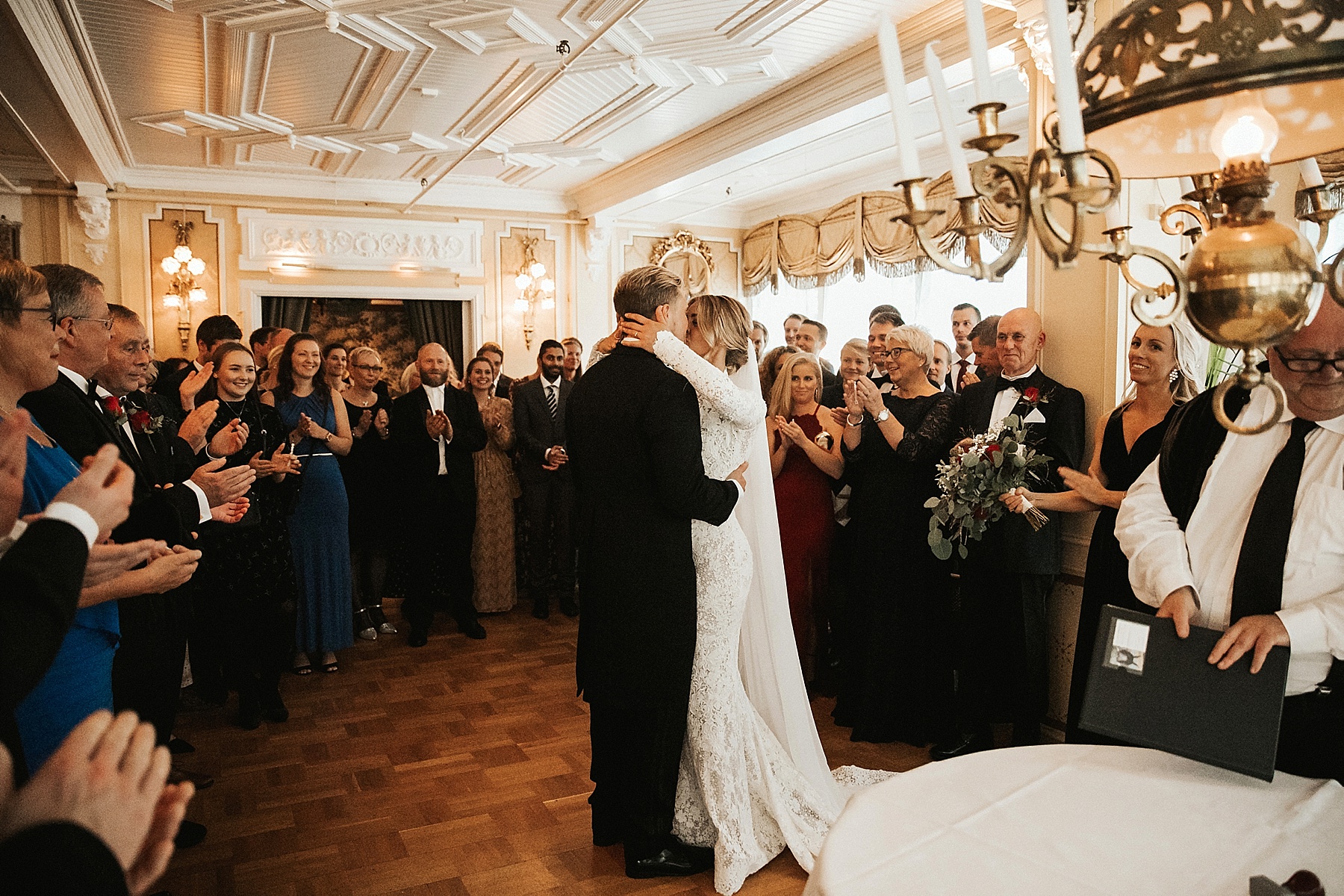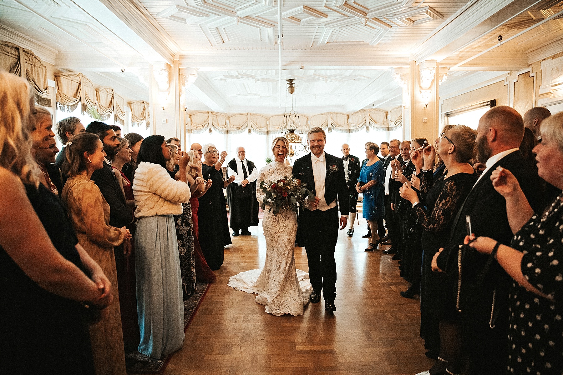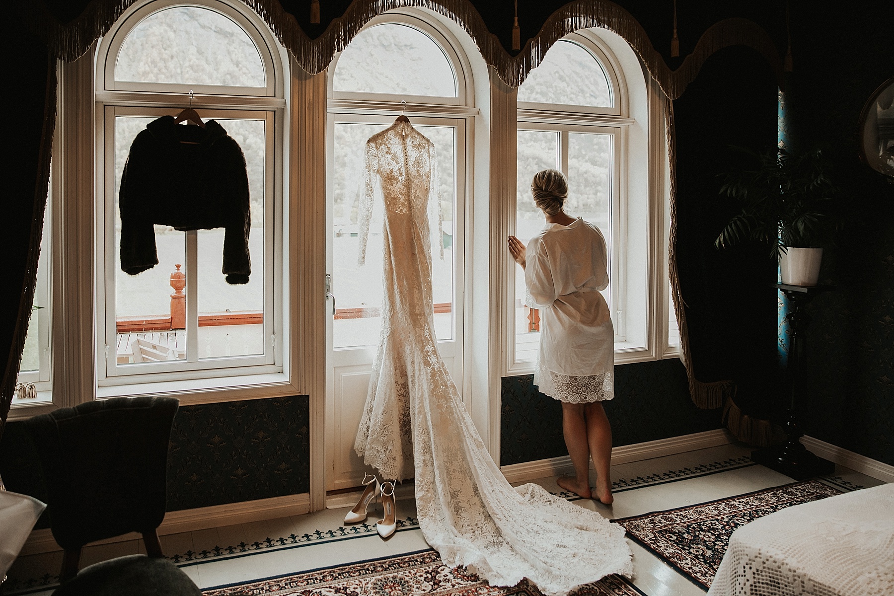 Det var viktig for oss at gjestene skulle ha en bra dag sammen med oss, og en minnerik opplevelse av å dele en, for oss, så viktig dag. God mat, godt drikke, god stemning og et hotell fylt med venner, familie og kjærlighet var det vi gledet oss aller mest til. Vi elsker alt som har med høsten å gjøre. Fargene, lyset, maten, utetid og innekos, tid sammen med de som betyr mest for oss – og ønsket å fylle dagen med akkurat dette. Og, dagen ble magisk, fra start til slutt. Fra morgentur i båt i Hjørundfjorden for gjestene, til forberedelser, pynting og siste finpuss, vielse i salongen, latter, tårer, og varme klemmer, fotografering, middag, taler, sang, lek, dans og fest. Avslutningen på kvelden hvor strømmen og dermed lyset gikk i hele bygda, og hvorpå en studievenninne spilte på flygelet i mørket før vi alle gikk å la oss.