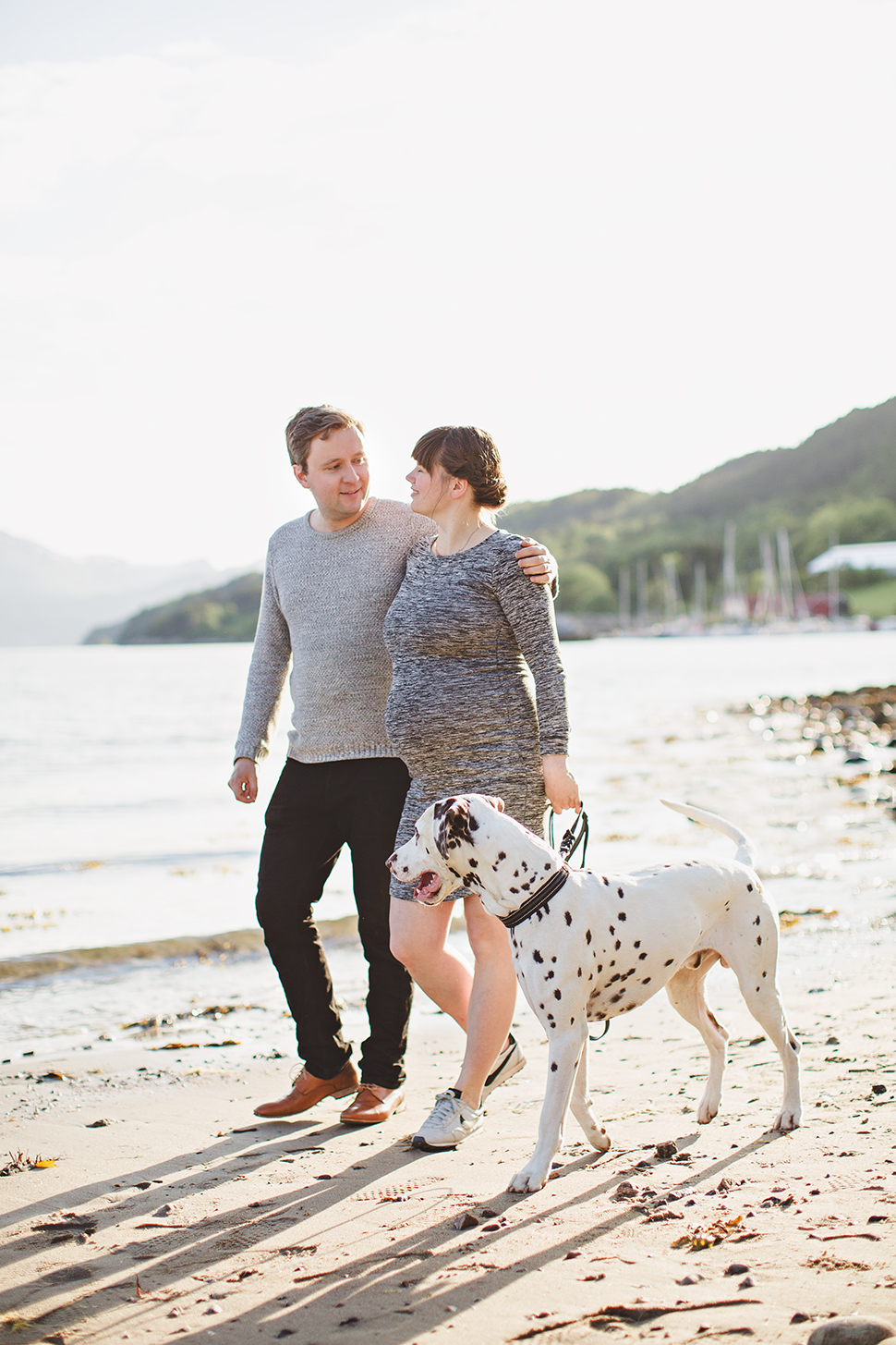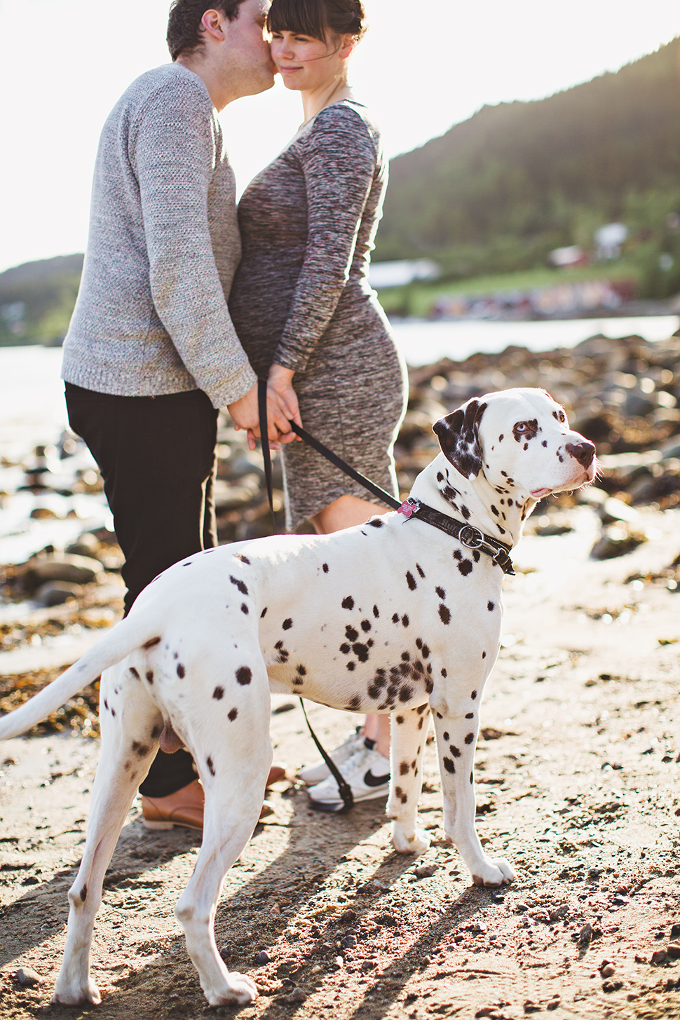 Jeg hadde avtalt å møte Ingrid og Anders en nydelig sommerkveld i Kringstadbukta, der vi skulle ta gravidbilder av Ingrid som da var syv måneder på vei. De hadde også med seg dalmatineren Ruffen som så klart fikk være med på noen av bildene. Og jeg må si at han var jammen en fotogen bisk :) Takk for en flott stund på stranden Ingrid og Anders, og lykke til med en veldig spennende tid fremover!