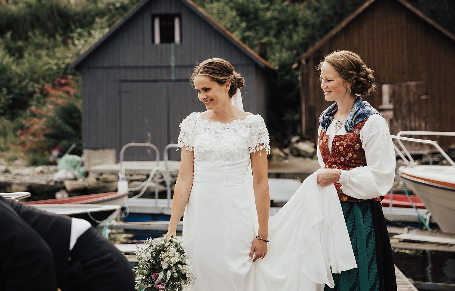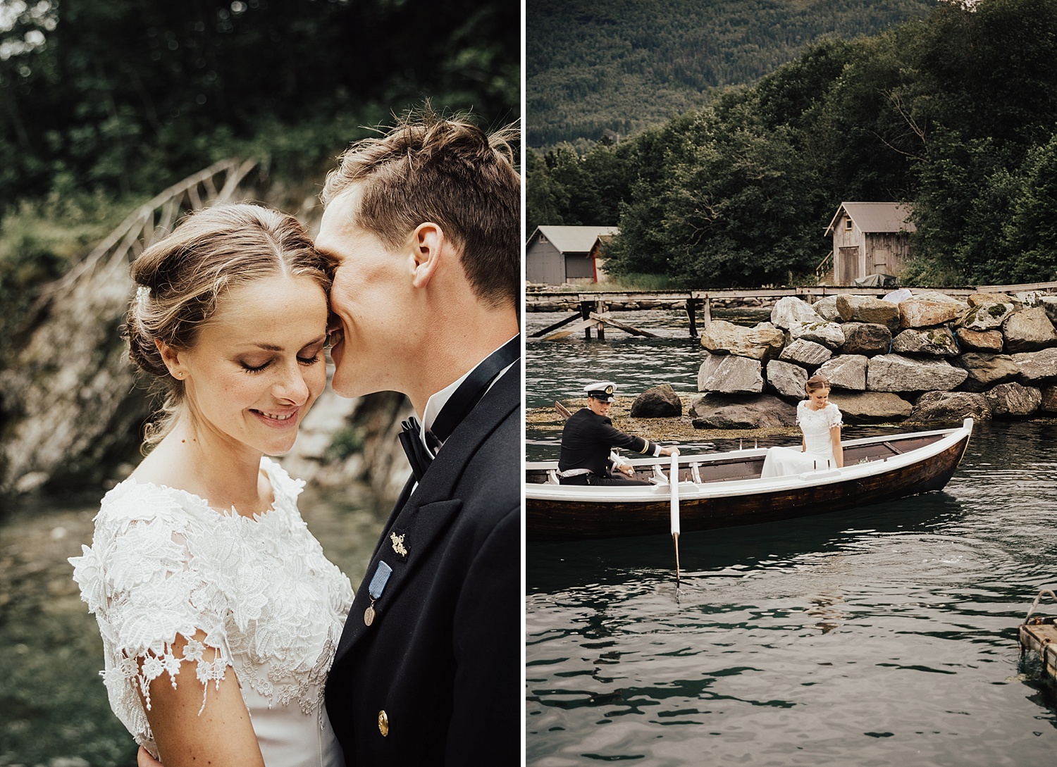 6. august i fjor fikk jeg ta turen til Ørsta, i anledning Julie og Narves store dag. Det var mitt første bryllup der i området, og omgivelsene skuffet ikke, for å si det sånn :) Julie startet dagen hos Annes Frisør i Volda, og derfra gikk turen videre til flotte Ørsta kirke, hvor en spent brudgom ventet. Det ble en rørende vielse og jeg tror nesten ikke et øye var tørt da bruden kom nedover kirkegulvet, og da Narve sang til Julie. (Den lettrørte fotografens øye var heller ikke tørt ;) Etter vielsen tok brudeparet blant annet en tur ut på sjøen i færing og vi avsluttet ved et nydelig fossefall, visstnok det lokale badeland i Narves yngre dager :) Helt utrolig flott!