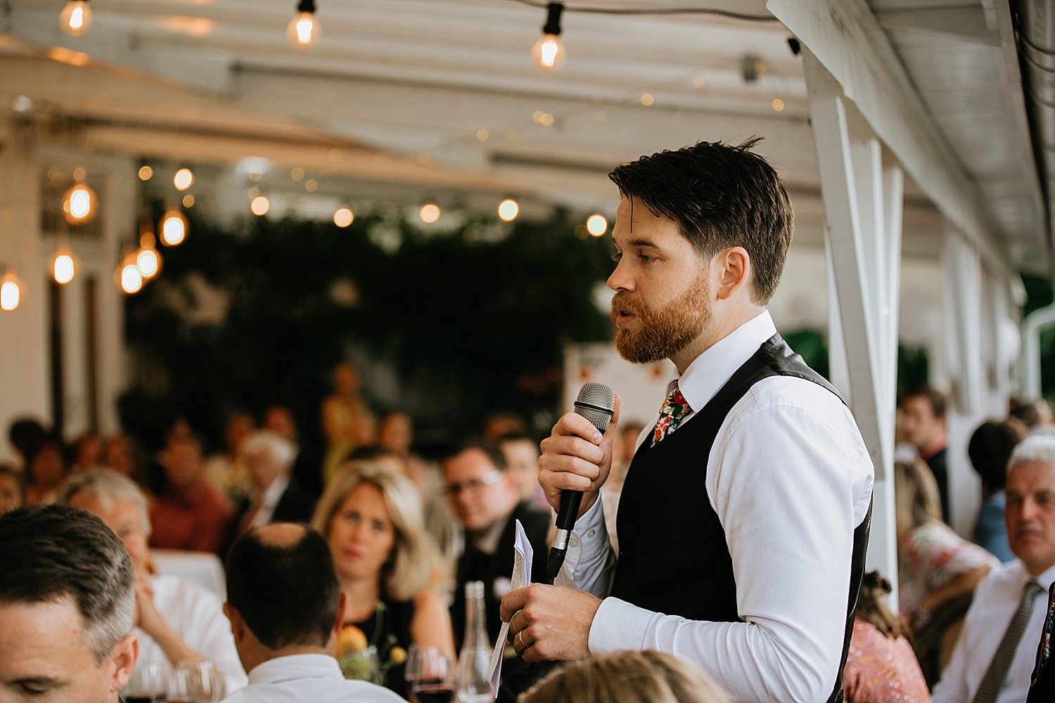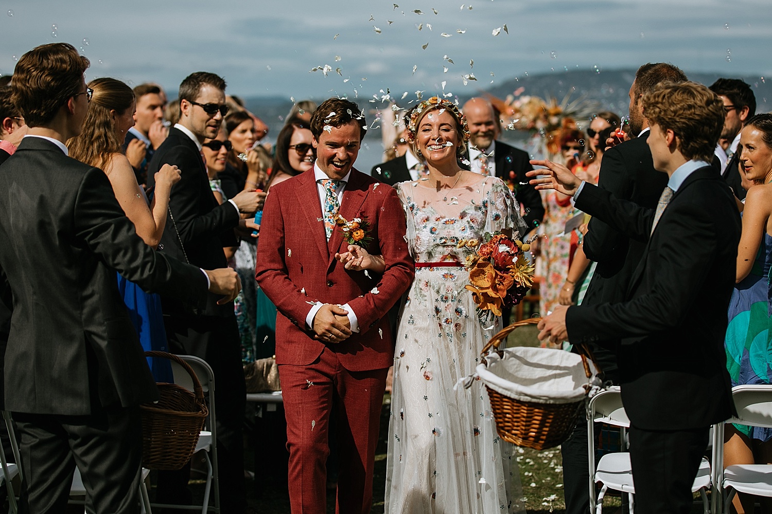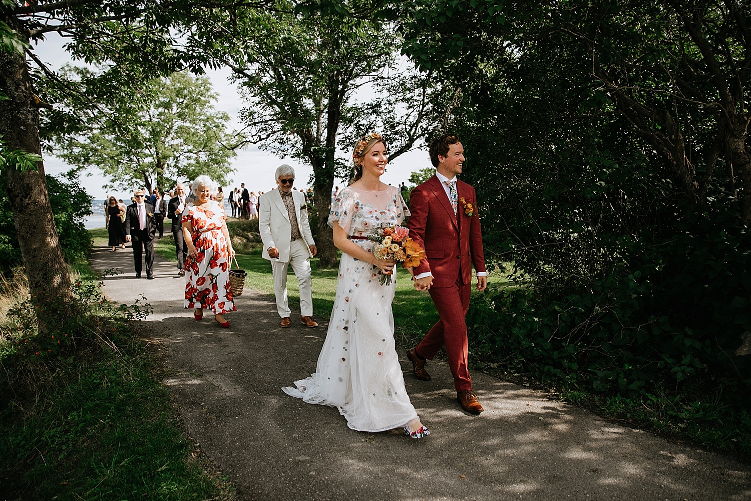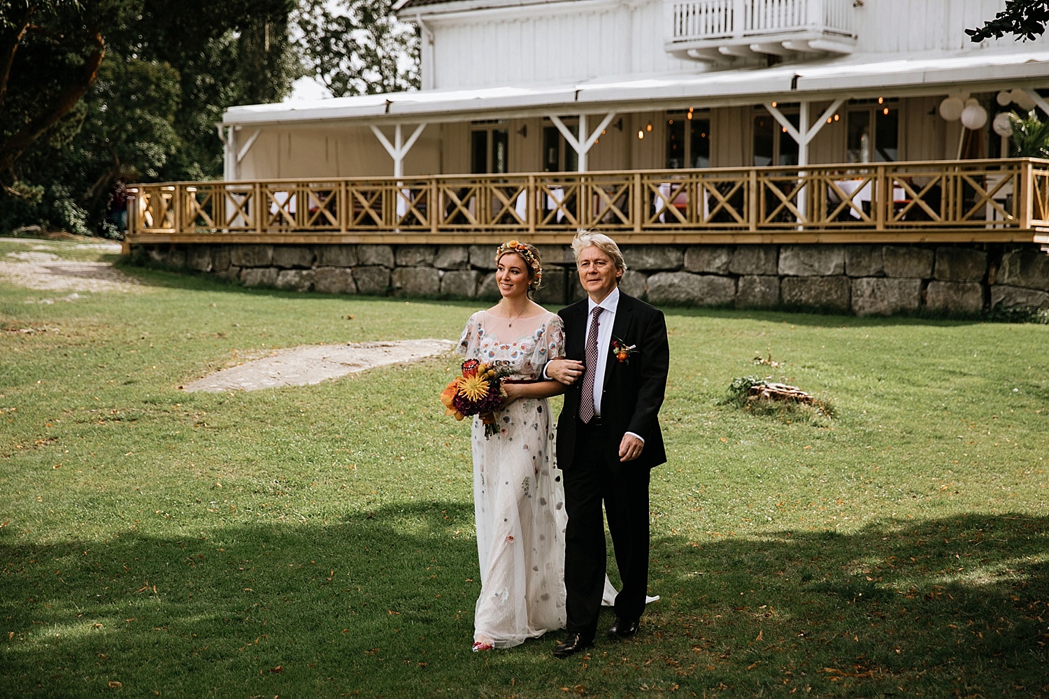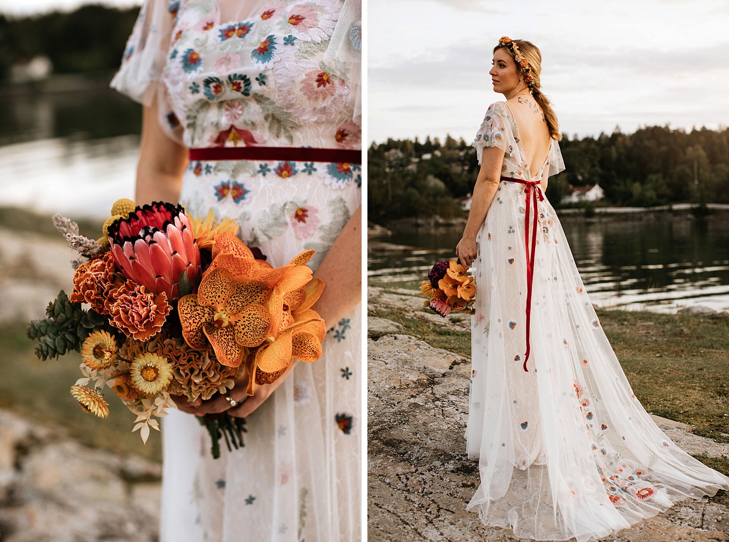 Kort fortalt, dagen opprant med strålende vær og det ble en perfekt start på dagen for mange av gjestene som tok båt fra Oslo. Hele dagen var en fest for øynene, med utradisjonelle valg både i farger, blomster og kjole og dress, og det var så gøy å se! Ingenting var overlatt til tilfeldighetene her, og Hellviktangen var den perfekte rammen rundt feiringen av Mari og Mads denne strålende augustdagen <3