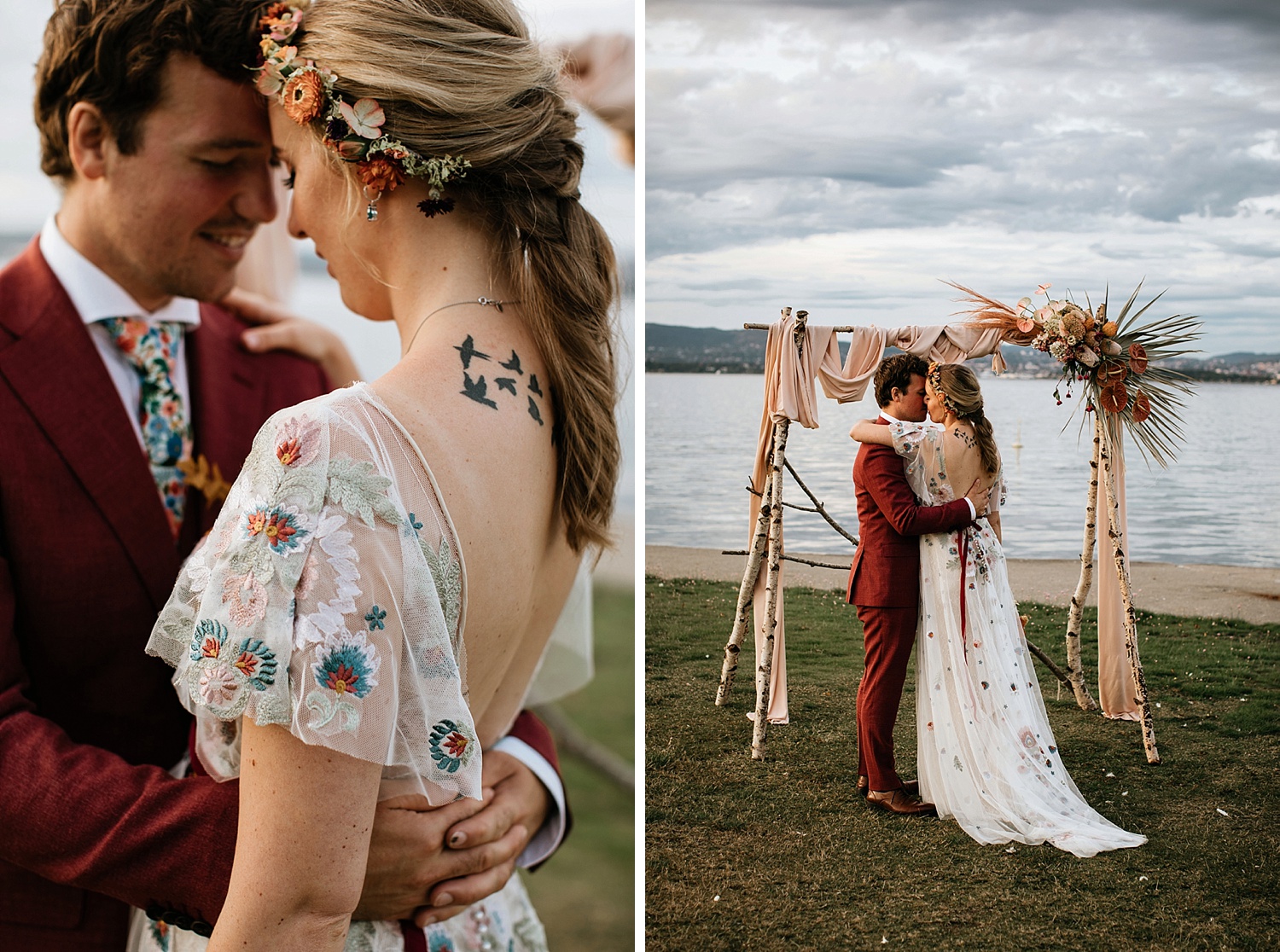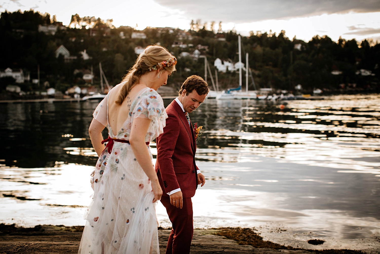 Da Mari kontaktet meg om å fotografere bryllupet deres ble jeg veldig glad, endelig skulle det klaffe med at jeg fikk fotografert et bryllup i Oslo, nærmere bestemt på Hellviktangen. Jeg møtte Mari da jeg var i Oslo på vårparten, og jeg skjønte raskt at her var det mye å glede seg til! Jeg er jo en stor fan av utendørs vielser, og var spent på å se hvordan de skulle løse dette nede ved sjøen med utsikt mot Oslo.