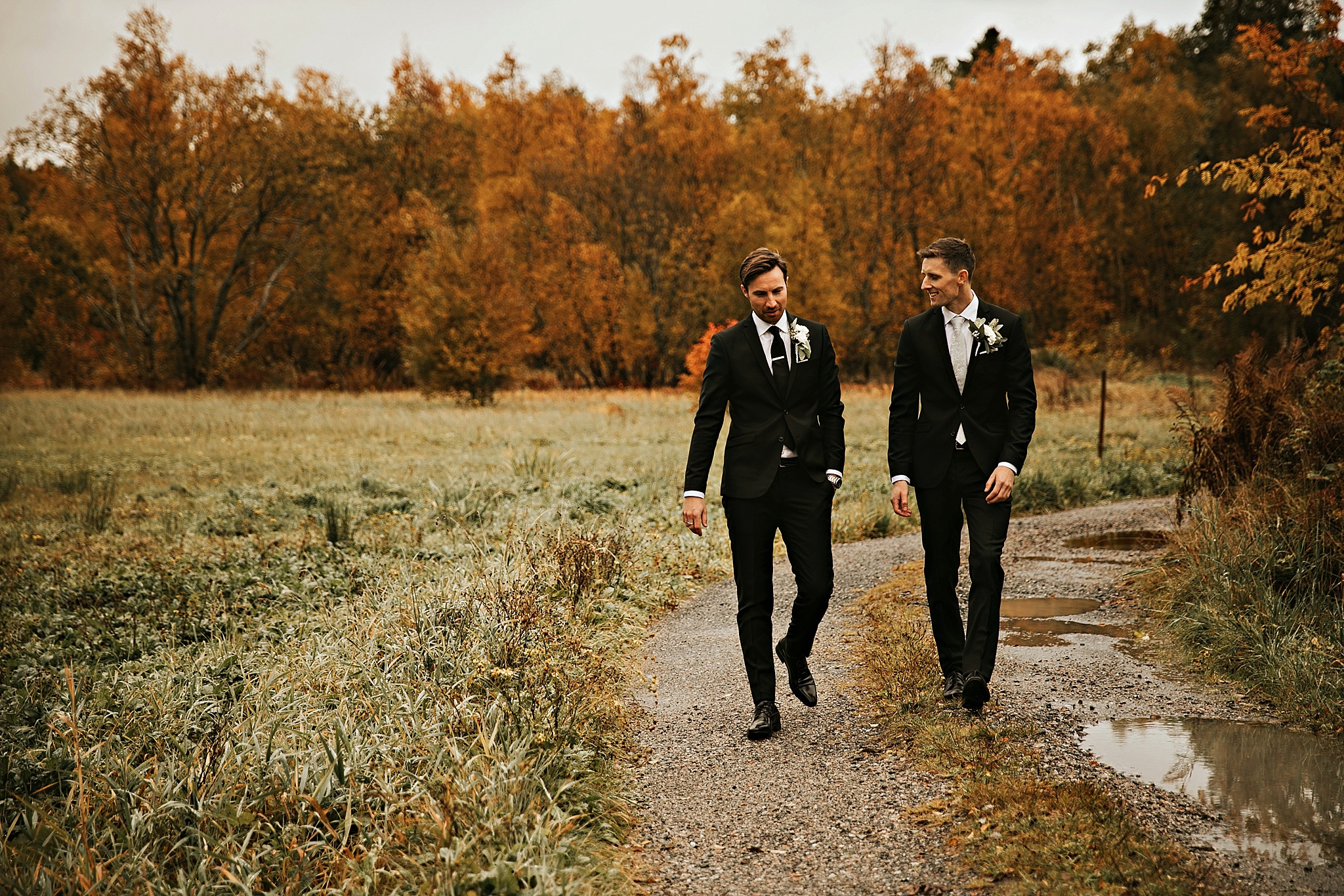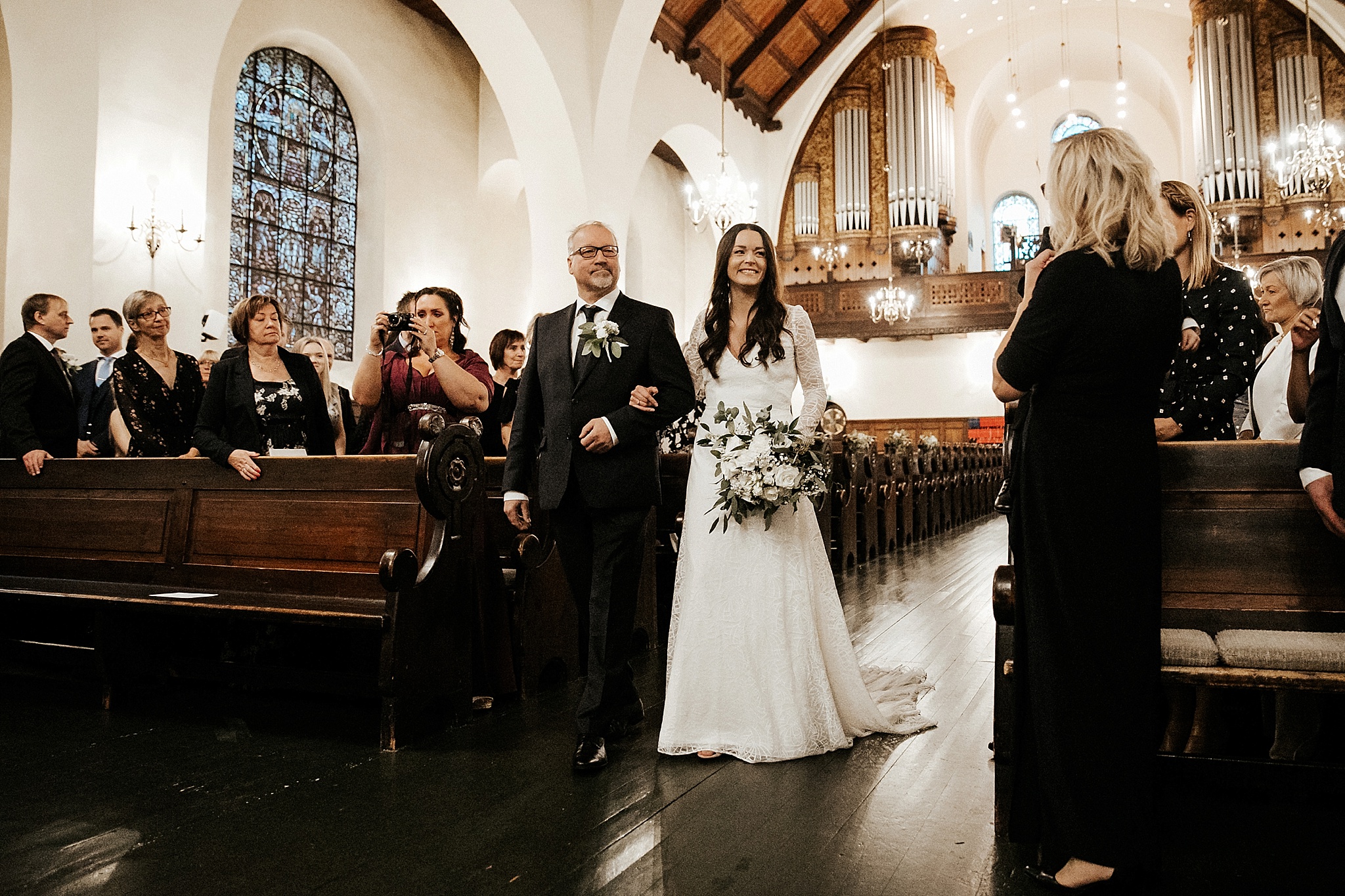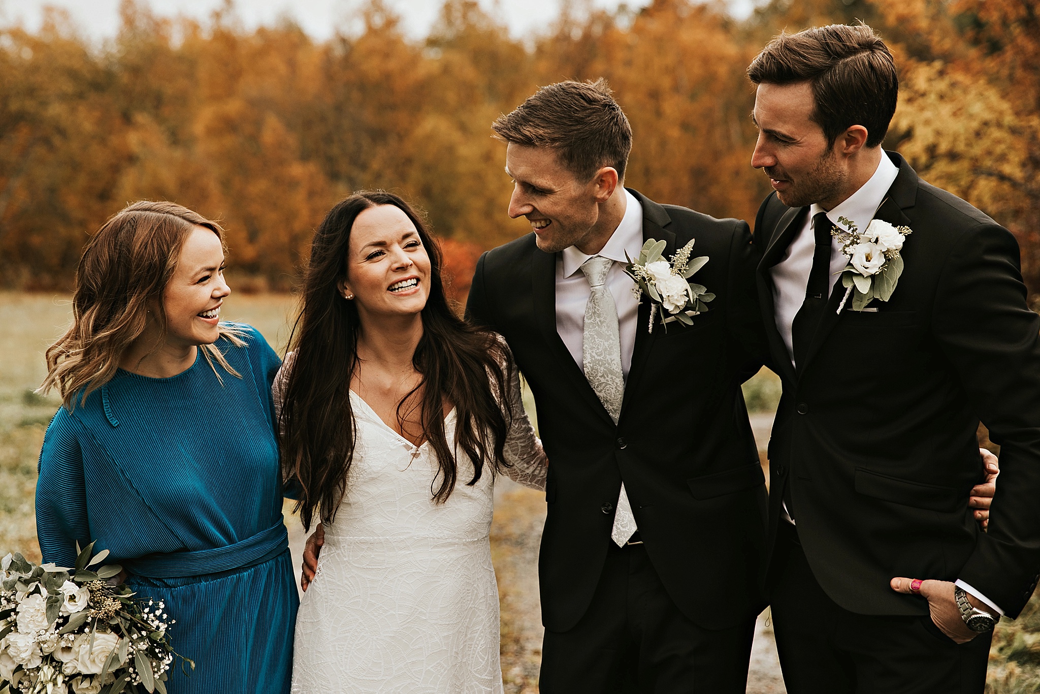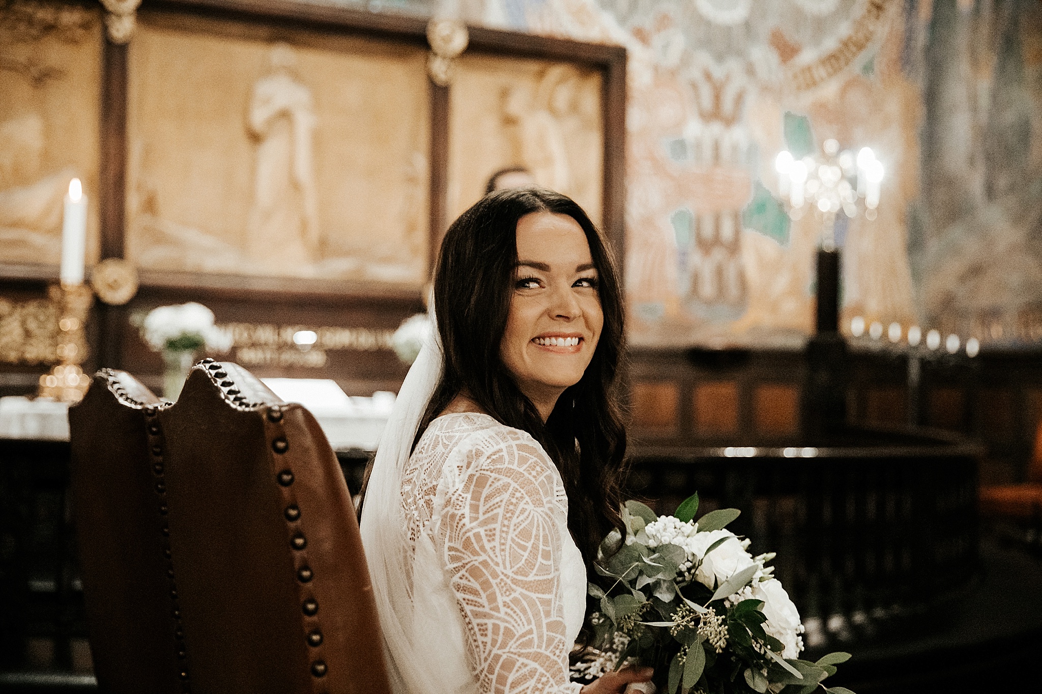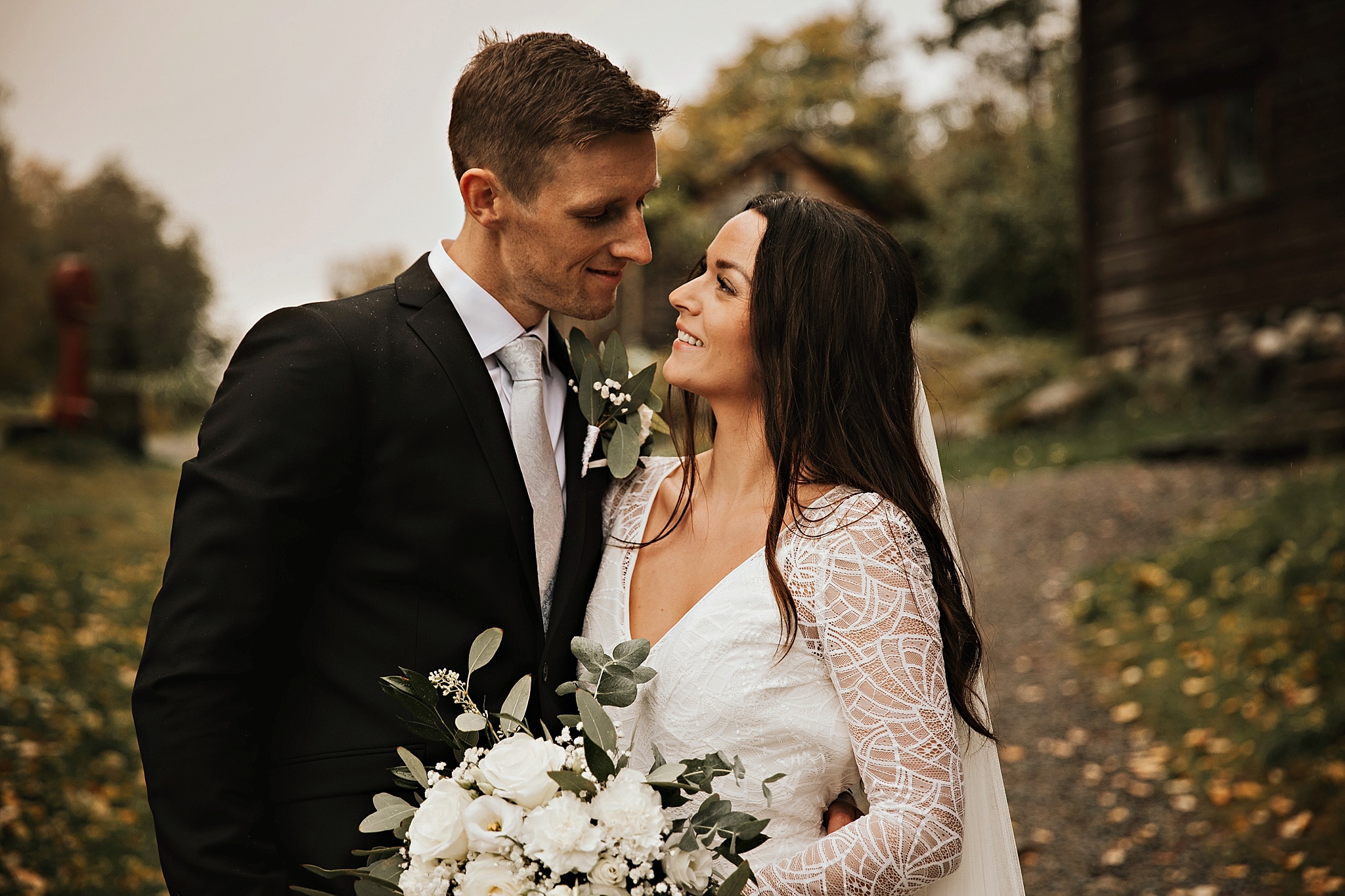 Ah høstbryllup. Bare ordet får meg til å bli mo i knærne! Tankene går til landskap i de nydeligste farger, lav høstsol og alt som hører med denne fantastiske årstiden. Men, nå bor vi jo engang i et land med mildt sagt varierende vær, og man er jo like lite garantert sol i høstbryllup, som på sommeren. Så når Natalie og Eiriks store dag kom i starten av oktober, var det en av disse hustrige høstdagene med regnbyger som kom og gikk. Men, er det en ting jeg har lært som bryllupsfotograf, så er det at været har ingenting å si for utfallet av dagen, og det var også tilfellet her. Her er Natalie og Eiriks historie, fulgt av bildene fra deres store dag i oktober…