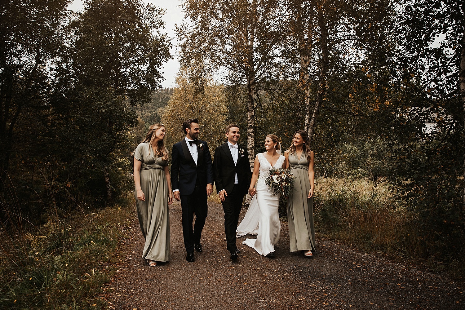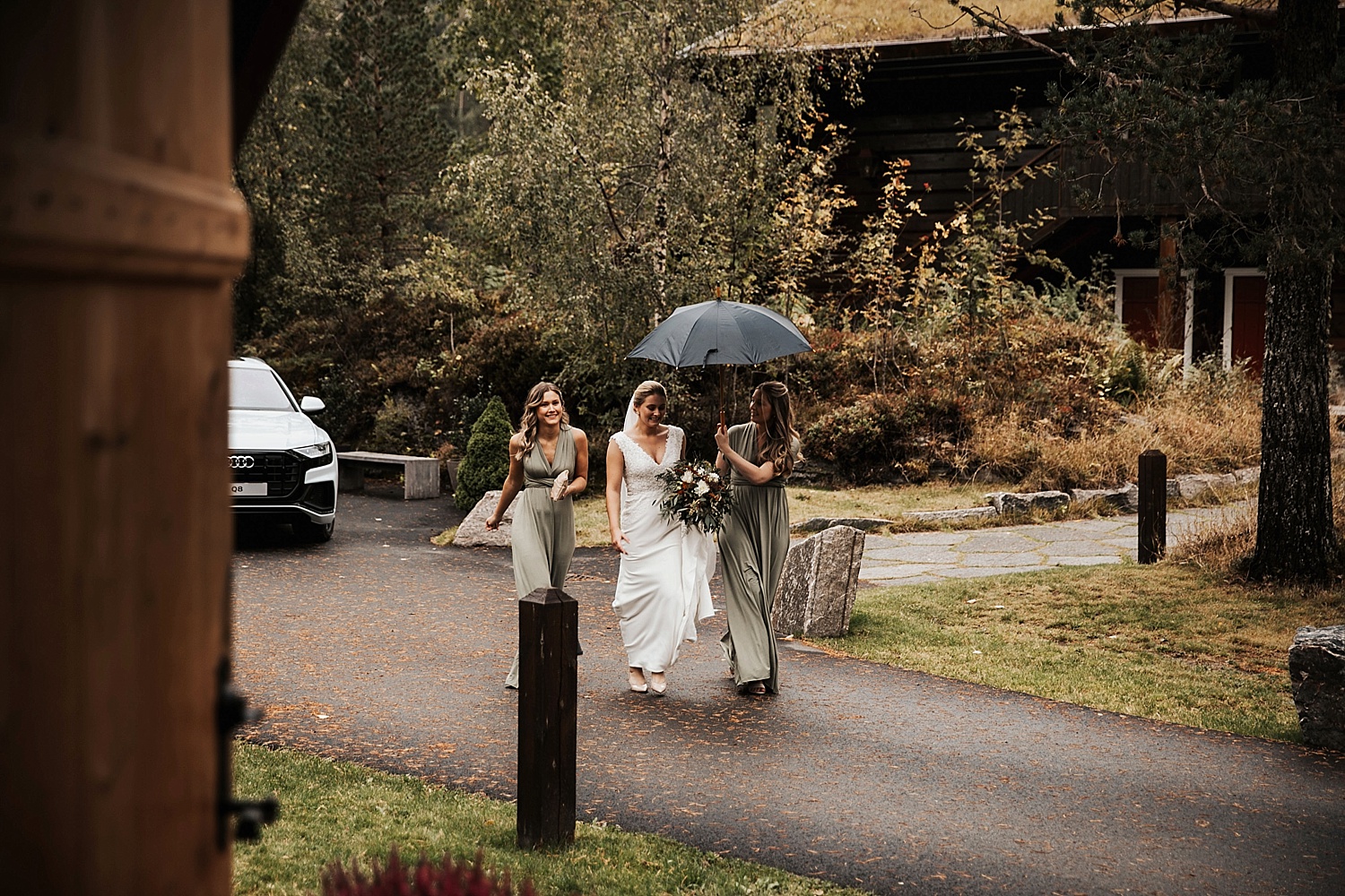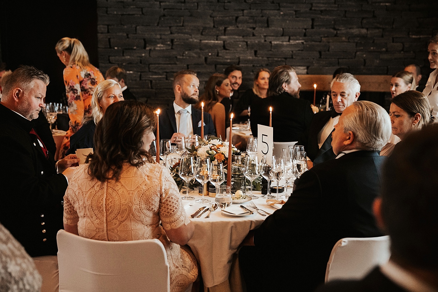 Vi ville feire den store dagen vår over en helg der vi kunne senke skuldrene og være mye sammen med gjestene våre. Vi ville at alle skulle ha muligheten til å bli kjent og finne roen og stemningen sammen med oss. Vi ønsket derfor aktiviteter og en uformell middag dagen før dagen. Vi så for oss en vielse der vi var nærme gjestene og planla derfor en vielse utendørs med den flotte utsikten i bakgrunnen. Vi var veldig heldig som fikk presten til å vie oss utenfor kirken og det skapte den rette stemningen for oss. Og angående været på Sunnmøre.. Det ble jo regn på dagen vår, så vi bestemte oss derfor for å flytte vielsen innendørs – det ble en utrolig minnerik og fin opplevelse å ha alle gjestene våre så tett på. Vi avsluttet selvfølgelig dagen med sunnmørsk kakebord og en skikkelig fest!
