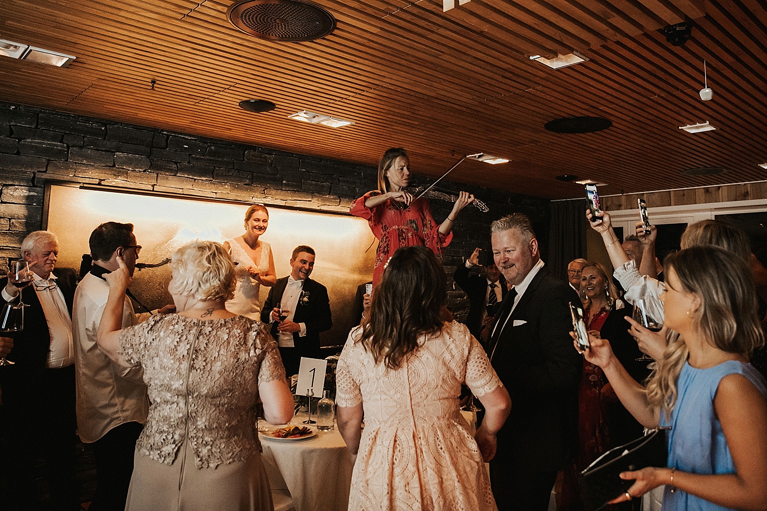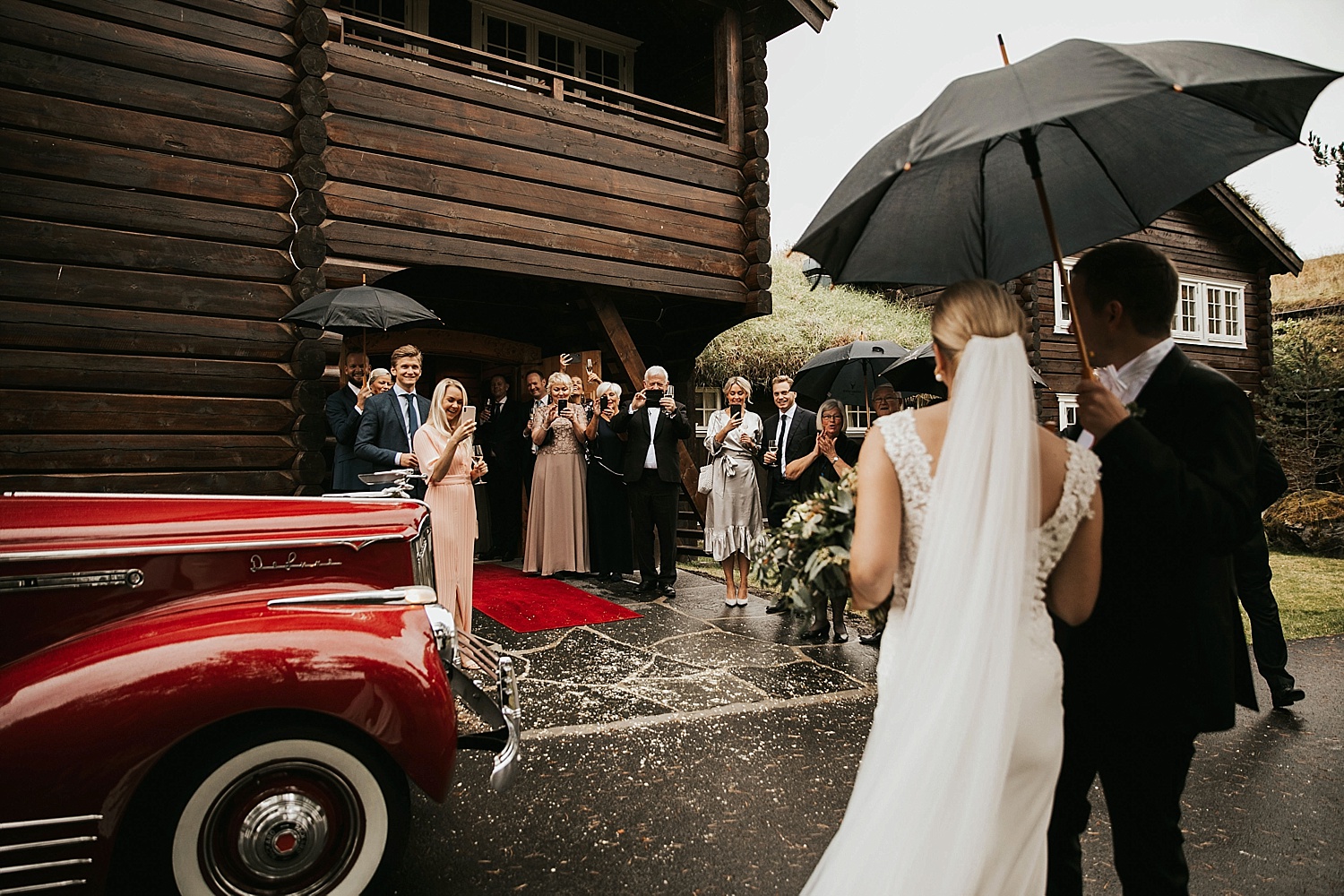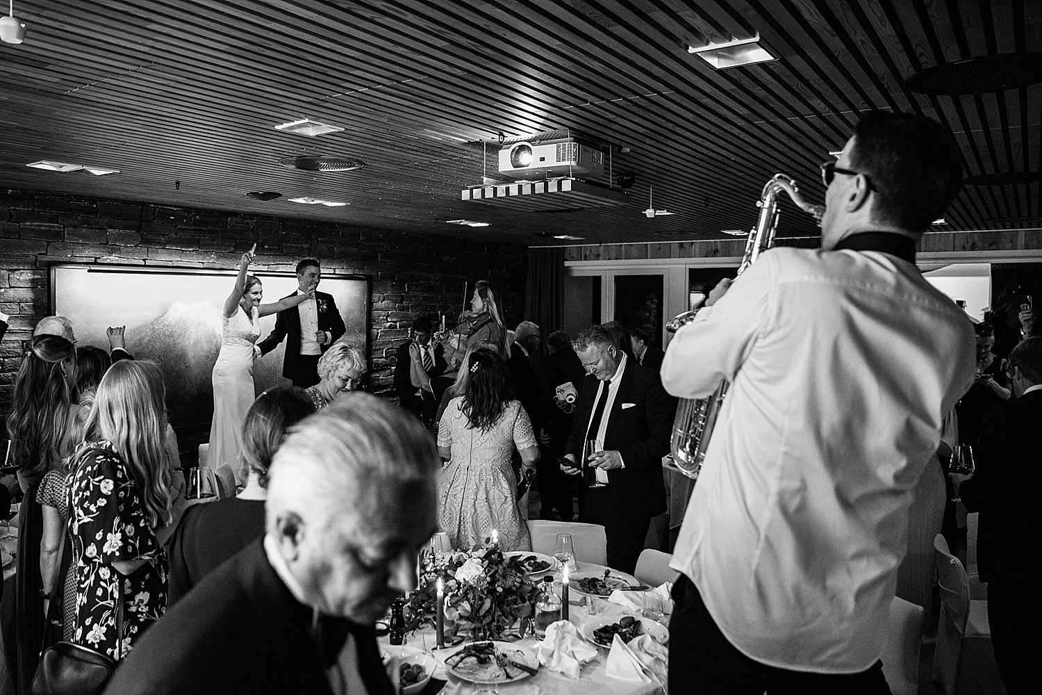Vi ville feire den store dagen vår over en helg der vi kunne senke skuldrene og være mye sammen med gjestene våre. Vi ville at alle skulle ha muligheten til å bli kjent og finne roen og stemningen sammen med oss. Vi ønsket derfor aktiviteter og en uformell middag dagen før dagen. Vi så for oss en vielse der vi var nærme gjestene og planla derfor en vielse utendørs med den flotte utsikten i bakgrunnen. Vi var veldig heldig som fikk presten til å vie oss utenfor kirken og det skapte den rette stemningen for oss. Og angående været på Sunnmøre.. Det ble jo regn på dagen vår, så vi bestemte oss derfor for å flytte vielsen innendørs – det ble en utrolig minnerik og fin opplevelse å ha alle gjestene våre så tett på. Vi avsluttet selvfølgelig dagen med sunnmørsk kakebord og en skikkelig fest!